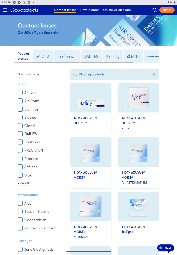 Discover a world of crystal-clear vision and unmatched comfort with our premium selection of contact lenses for every eye type — from daily disposable contacts to toric lenses for astigmatism and colored lenses that enhance your natural beauty. Whether you’re shopping for the best contact lenses for dry eyes, looking for affordable lens solutions online, or comparing monthly vs. daily contact lenses, our expertly curated brands like Acuvue, Biofinity, and Alcon deliver clarity you can trust.